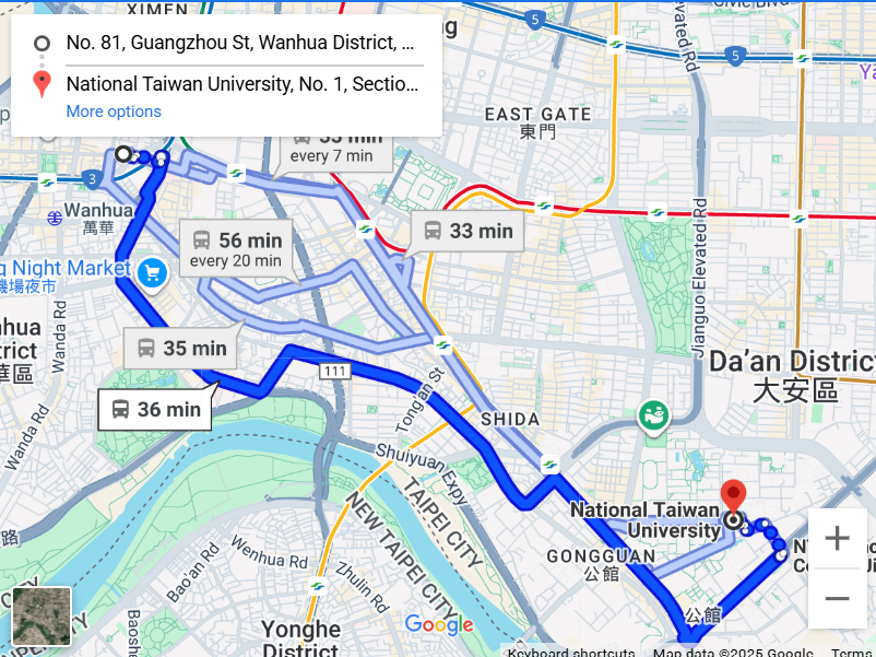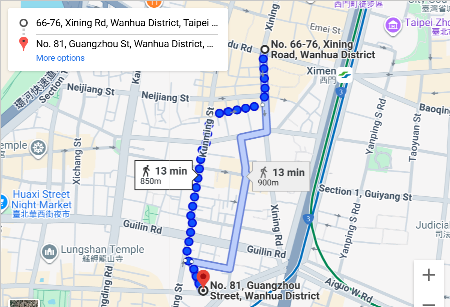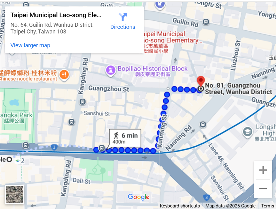 This unique studio has two bedrooms and many features! It has new hardwood floors and modern neutral colors, reflecting contemporary design with an East Asian touch. The full kitchen includes new stainless steel appliances. Newly installed blackout curtains provide extra privacy between the bedroom and bathroom. Being on the top floor ensures a quiet environment. Located under a mile from various attractions, it’s about 10 minutes to Taiwan’s famous Ximending night market and 6 minutes to Longshan metro station. Both areas offer a variety of restaurants and shops within two miles, including Tiantianli Restaurant, Ximen Red House Thai Food, and RKZ Cafe.